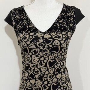 Desigual Black & Tan Heart Print Dress Cap Sleeves Pullover Short Size S