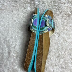 Desigual Blue,purple &.green floral strap slip on cork sandals size 9