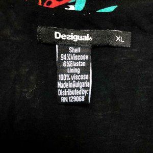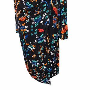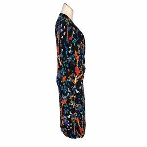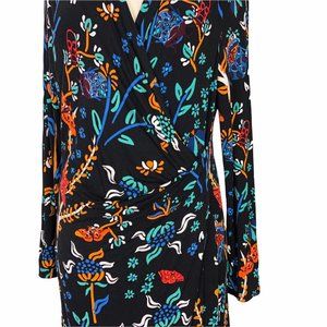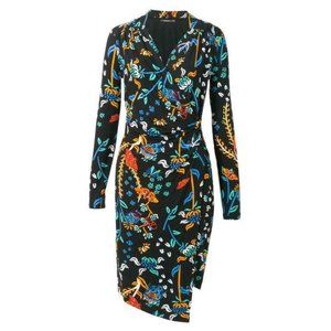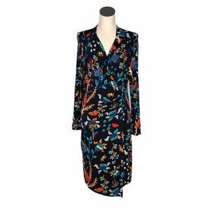 Desigual Bridie Womens L Floral Mock Wrap Dress Black Rayon Spandex Long Sleeve