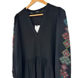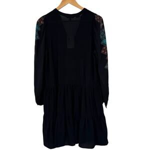 Desigual Calendula Balloon Sleeve V-Neck Tiered Mini Dress in Black Size S NWT