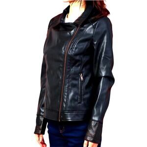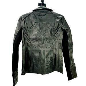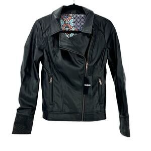 Desigual Chaq Emine Rep Vegan Leather Moto Biker Jacket Black Size 40/ US 6 NWT