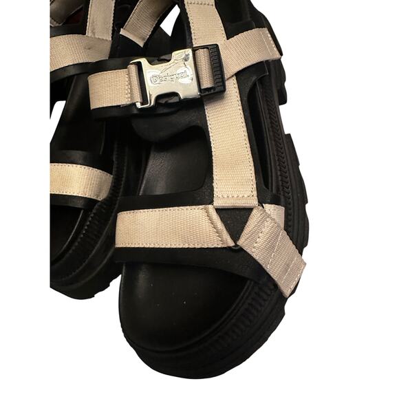 Desigual Chunky Platform Sandals Beige and Black Strappy Buckle Women’s 9