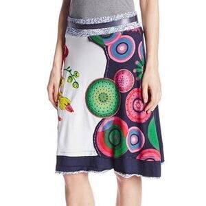 Desigual Colorful Boho Art Embroidered Floral Cotton A-Line Skirt