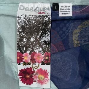 Desigual Colorful Boho Art Embroidered Floral Cotton A-Line Skirt Size Large