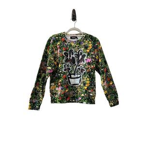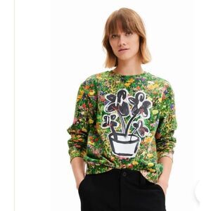 Desigual Crew Neck Floral Plant Print Sweatshirt Women’s Green Size Small