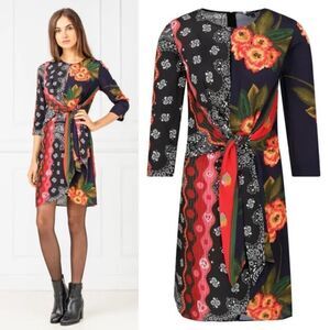 Desigual Dana Draped Print Mini Dress Blue Multi Size 6