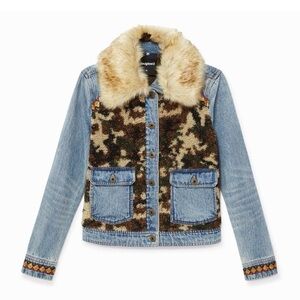 Desigual Camo Jean jacket with faux fur collar that is removable!