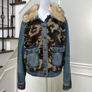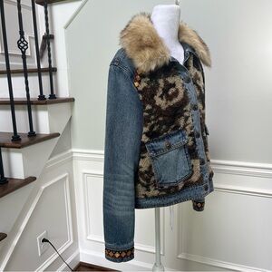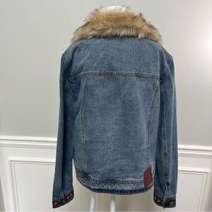 Desigual Denim Camouflage Jean Jacket with Faux Fur XL