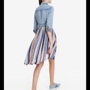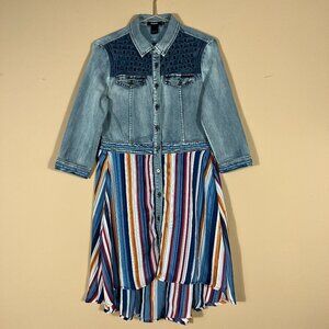 Desigual Denim Women's Front Button Striped High/Low Dress Size 10