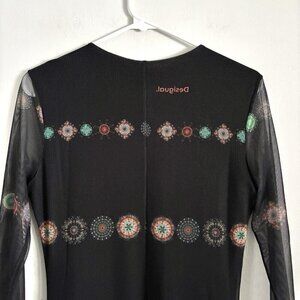Desigual Double Layer Sheer Long Sleeve Midi Dress Women’s Size Small