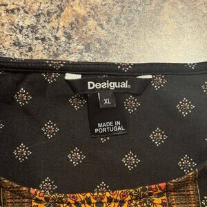 Desigual Dress Camille Boho Cottage Dark Academia Artsy Drop Waist Black Size XL