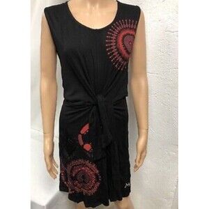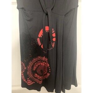 Desigual Dress Geometric Print Faux Wrap Tie Front Black & Red Whimsygoth size L