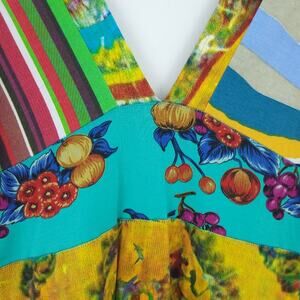 Desigual Dress Medium Fit and Flare Colorful Mixed Pattern, Short Sleeve Cute! Deep vneck. 100% Cotton. Summer dress.