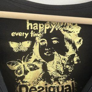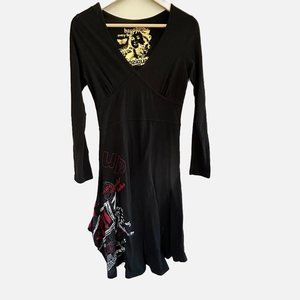 Desigual Dress Size Small Embroidered Happy! Asymmetric Hem Fit Flare y2k