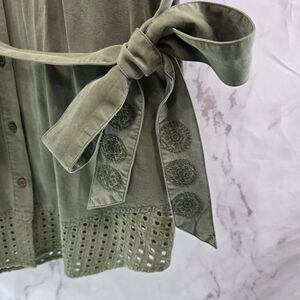 Desigual Dress Women Small Green Army Embroidered Shirt Tie Floral Military Boho