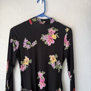 Desigual Dress Womens Medium Black Floral Living In The Sweet Petony Long Sleeve