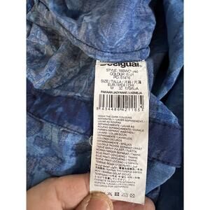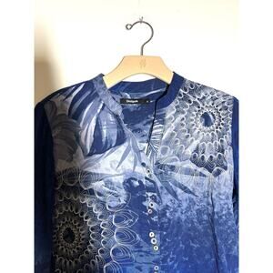 Desigual EUC Blue Embroidered Batinga Button Up Flutter Sleev Top Shirt Blouse M