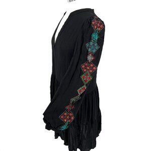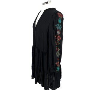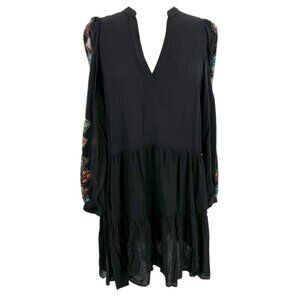 Desigual Ethnic Sleeve Embroidery Print Black Tiered Boho Dress Size Small
