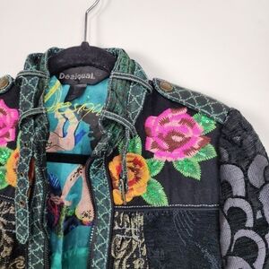 This stylish black jacket features vibrant floral embroidery, adding a touch of elegance to your wardrobe. Perfect for any occasion, it combines comfort with a unique design.