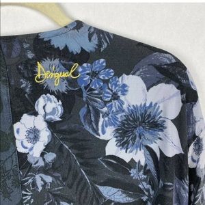Desigual Floral Patchwork Tunic Dress 3/4 Sleeve Ruffle Hem Bell Sleeve Size 38 Small (fits bigger)