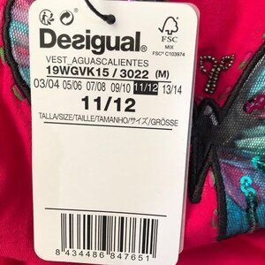 Desigual Girl's Long Sleeve Pink Dress Sequin Tulle Skirt Butterfly Applique Size 11/12