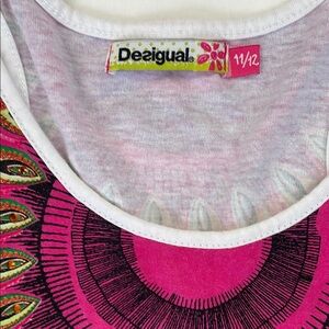 Desigual Girls Cotton Dress with Green and Pink Patterns 11/12