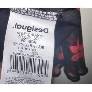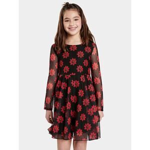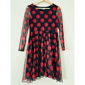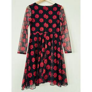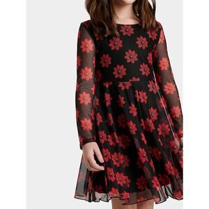Desigual Girls Dress Size 13/14 Red Daisy Flowers Mesh Black Long Sleeve