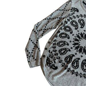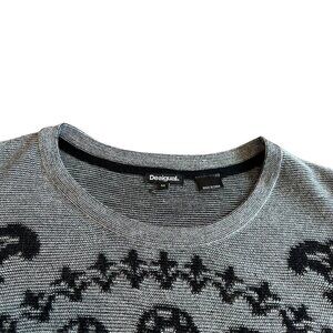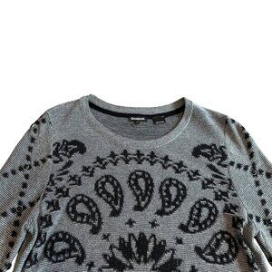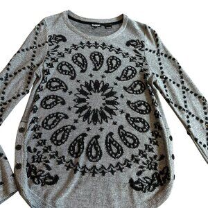 Desigual Grey Pullover Sweater Bohemian Print Stud Stretch Wool Blend Sz Medium