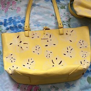 Desigual Handbag with Large Cosmetic Bag - Yellow Monstera Cutout