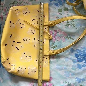 Great condition Two bags for one. Not leather but feel very leather like gorgeous inside and out faint marks on the back of the cutout bag, could probably clean off but I mildly tried. Very Slight corner wear on the big bag.