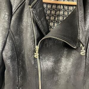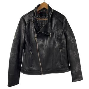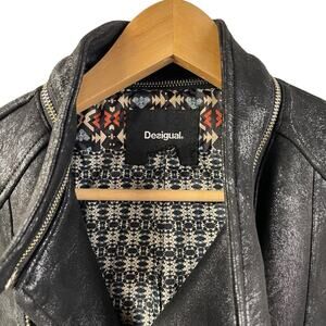 Desigual Jacket Black Marble Asymmetric Biker Faux Leather