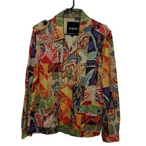 Desigual Jacket Tropical Print Patchwork Button Up Multicolor Shacket Medium