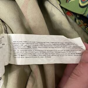 CONDITION: Jacket is in very good pre-owned condition with minor signs of wear visible. As shown, there is a small dark mark on the front of the jacket above the right side snap pocket. I am unsure if this is a stain or part of the multicolor print. Either way, the print is very forgiving. No holes or missing buttons observed. Please reference all photos before purchasing.