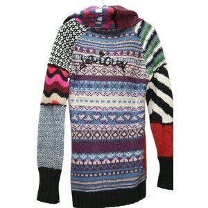 Desigual Larita 37J2151 Patchwork Knit Sweater Womens Small Artsy Boho Indie