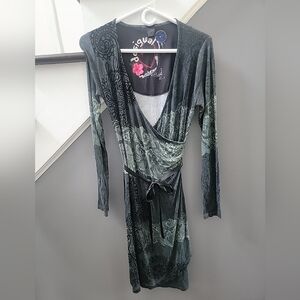 Desigual Lash Dress Medium Knee Length Green/Grey Artsy Comfort
