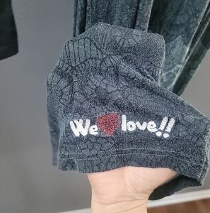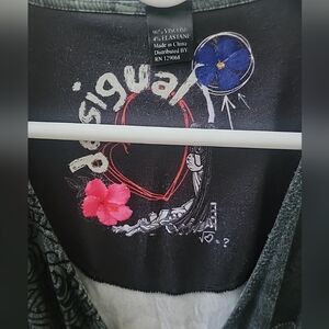 The Desigual Lash Dress is a medium knee-length t-shirt dress in a green floral pattern, perfect for casual occasions. Made from a viscose blend material, this dress features a deep V-neckline, long sleeves, and a graphic print. The dress is machine washable and designed for comfort, making it a stylish and practical choice for the fall season. With its artsy and comfortable design, this dress is sure to become a favorite in any woman's wardrobe. This is in great preloved condition.