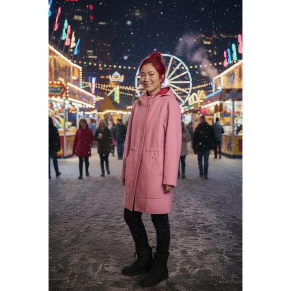 Desigual Lenzy Winter Barbie Fun Playful Pink Red Wool Reversible Hoodie Coat