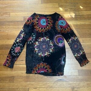 Desigual Long Sleeve Slim Tulle Abstract Blouse, size XS