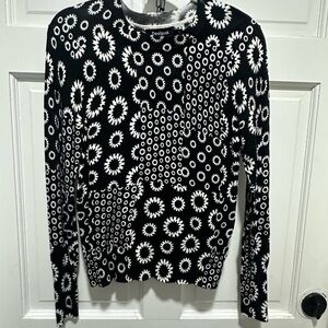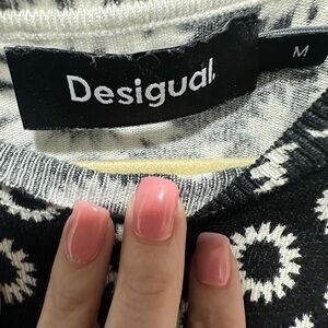 This Desigual blouse features a striking black and white graphic design, offering a fitted silhouette with long sleeves. The bold pattern and lightweight fabric make it a versatile choice for both casual and business casual settings.