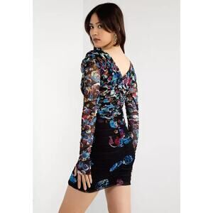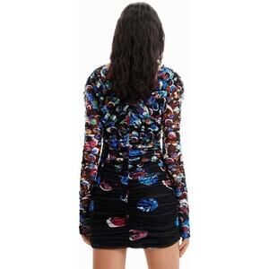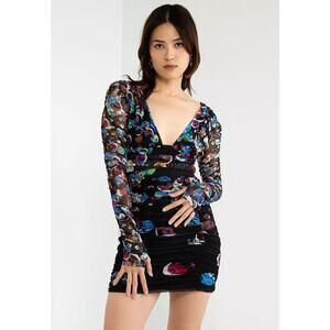 Desigual M. Christian Lacroix Confetti Dress Black Mesh Long Sleeve Mini Sz XS