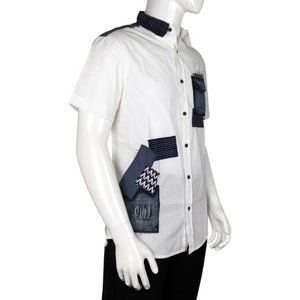 Desigual Men Shirts with Parches Colorful, White Color Size Small VM