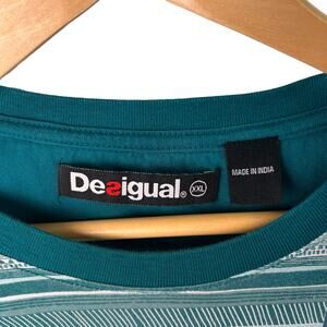 Desigual Mens Patchwork Tribal Tropical Print Short Sleeve T-shirt Blue XXL