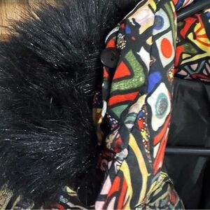 Desigual Multicolor Puffer Jacket with Detachable Faux Fur Collar (Size 40 US M)
