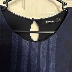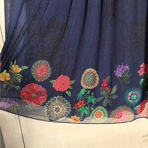Desigual Navy Floral Blouse with Sheer Sleeves