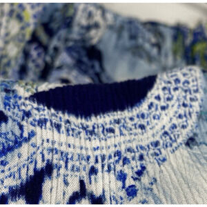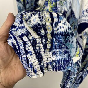 Desigual Off Shoulder Top Size XL Sheila Blue Mediterranean Pattern Long Sleeves