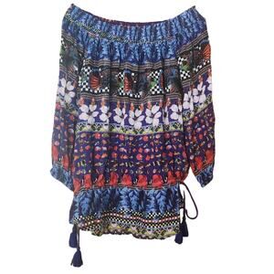 Desigual Off-the-shoulder Blouson Loose Fit Blouse, Elastic Waist, size M