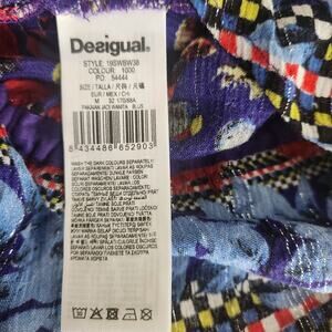 Desigual means "un-equal" in Spanish, and this Spanish company based in Barcelona strives for designs and clothing pieces that match the company name. Always unique and eye-catching and extremely popular in Europe. This blouse is in excellent pre-owned condition, like new, with no stains or flaws. See photos for measurements.