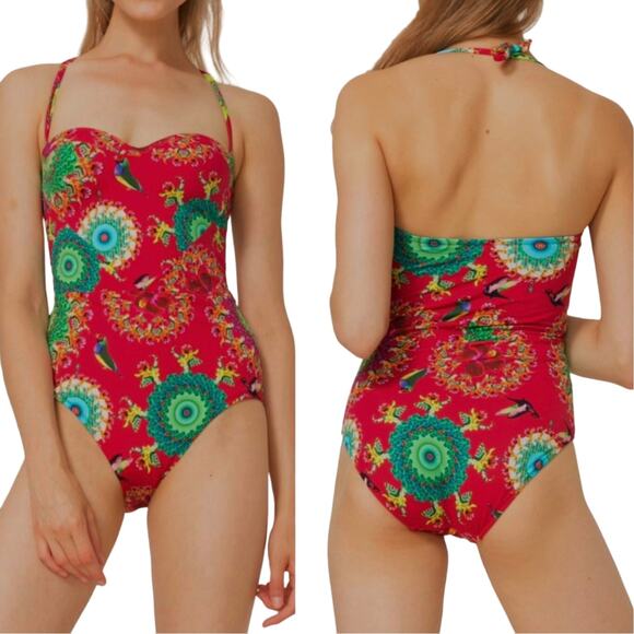 Desigual One Piece Swimsuit Size M Tropical Removable Straps Flowers Birds