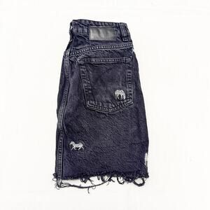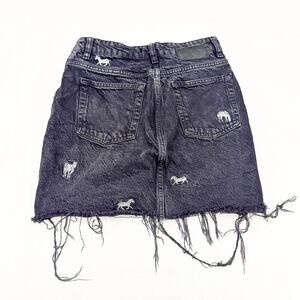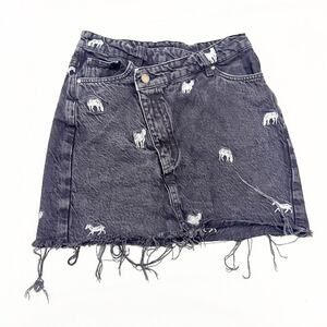 Desigual Pakaian Jadi Wanita Rok Charcoal Zebra Black Jean Denim Skirt Size S