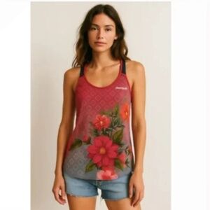 Desigual Pink Floral Burnout Tank Top Relaxed Tunic Lightweight Medium